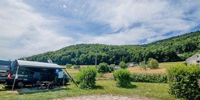 - 5 hectares de verdure vous proposant de jolis et confortables emplacements ombragés ou ensoleillés, avec vue imprenable sur la vallée. En été, rafraîchissez-vous à la piscine du camping !